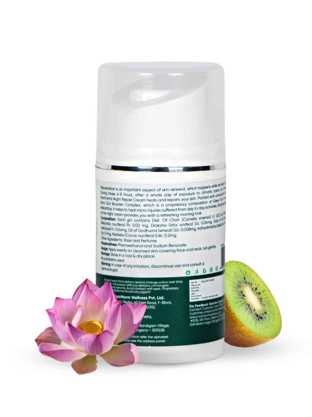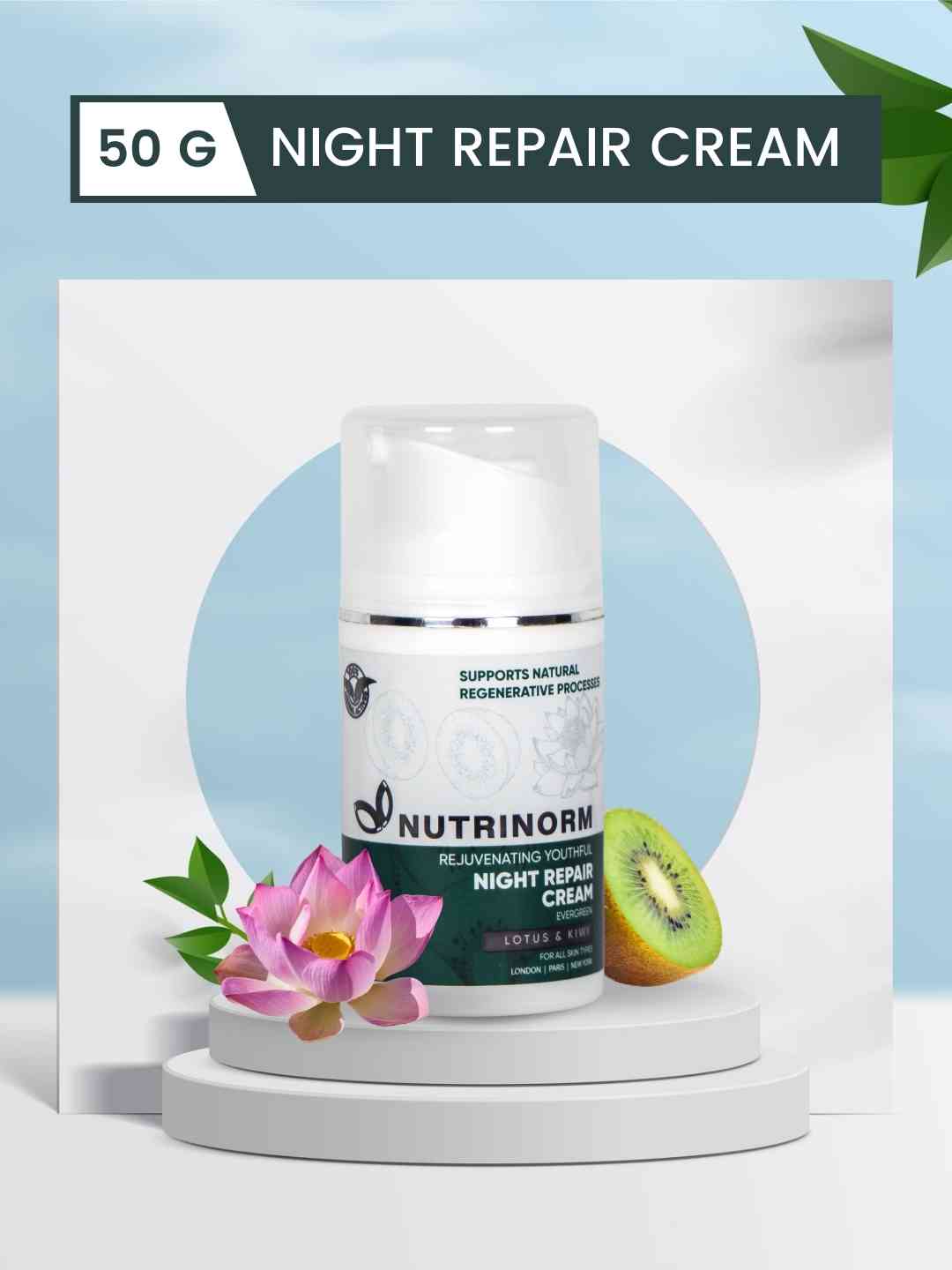 Nutrinorm Night Repair Cream is our best solution for providing anti-aging benefits to the skin. It is enriched with active ingredients which can help increase new skin cells by replacing old skin cells thus helping in skin regeneration. It also helps fight DNA damage in skin cells caused by environmental factors like UV rays and pollution.