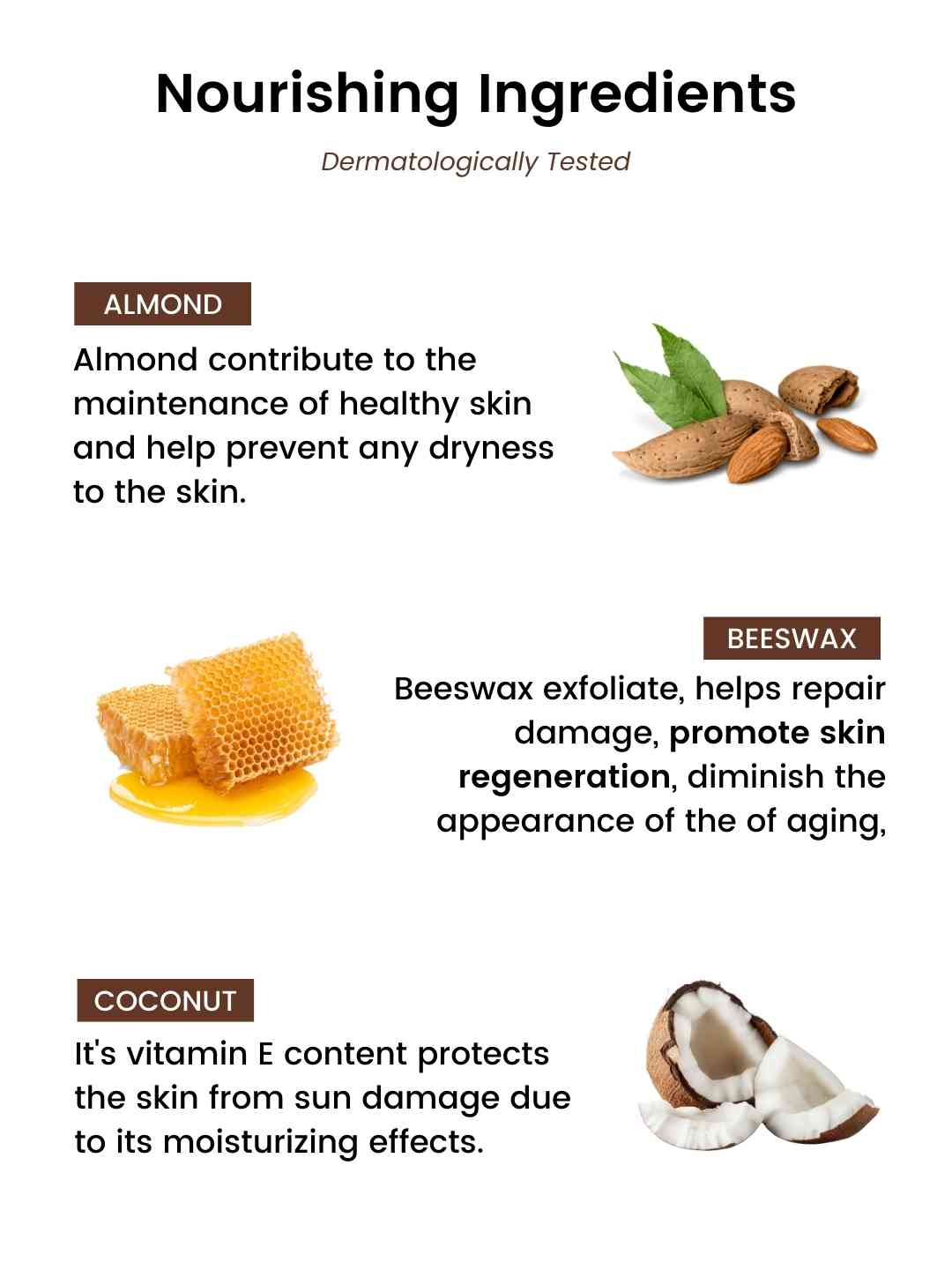 Coconut is rich in fatty acids and antioxidants that help prevent aging and damage to the skin. Its vitamin E content protects the skin from sun damage due to its moisturizing effects.