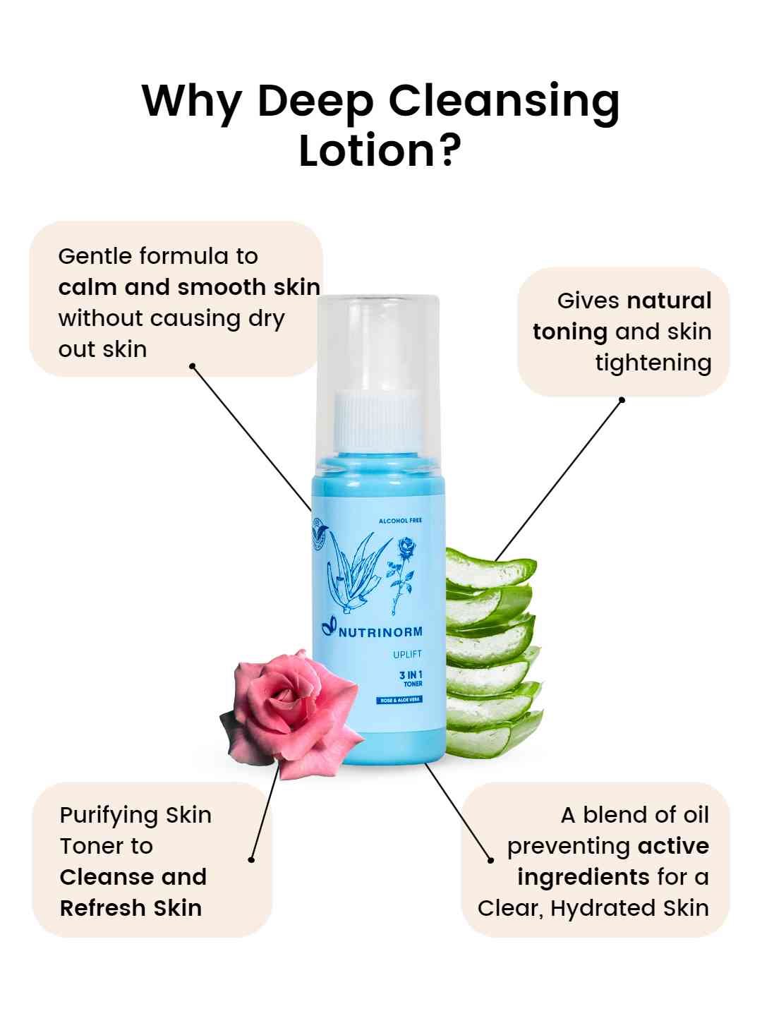 Nutrinorm 3 in 1 Toner is a purifying skin toner formulated to cleanse, hydrate the skin and provide everyday dose of freshness. The gentle formula calms and smoothens the skin without causing the skin to dry out.