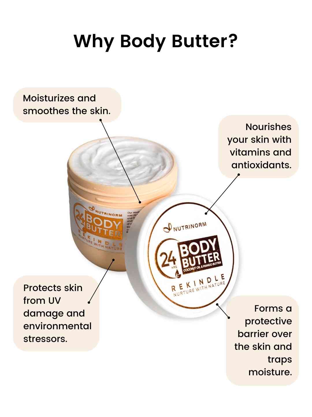 The Body Butter rich in fatty acids and antioxidants help prevent aging and damage to the skin. Its vitamin E content protects the skin from sun damage due to my moisturizing effects.
