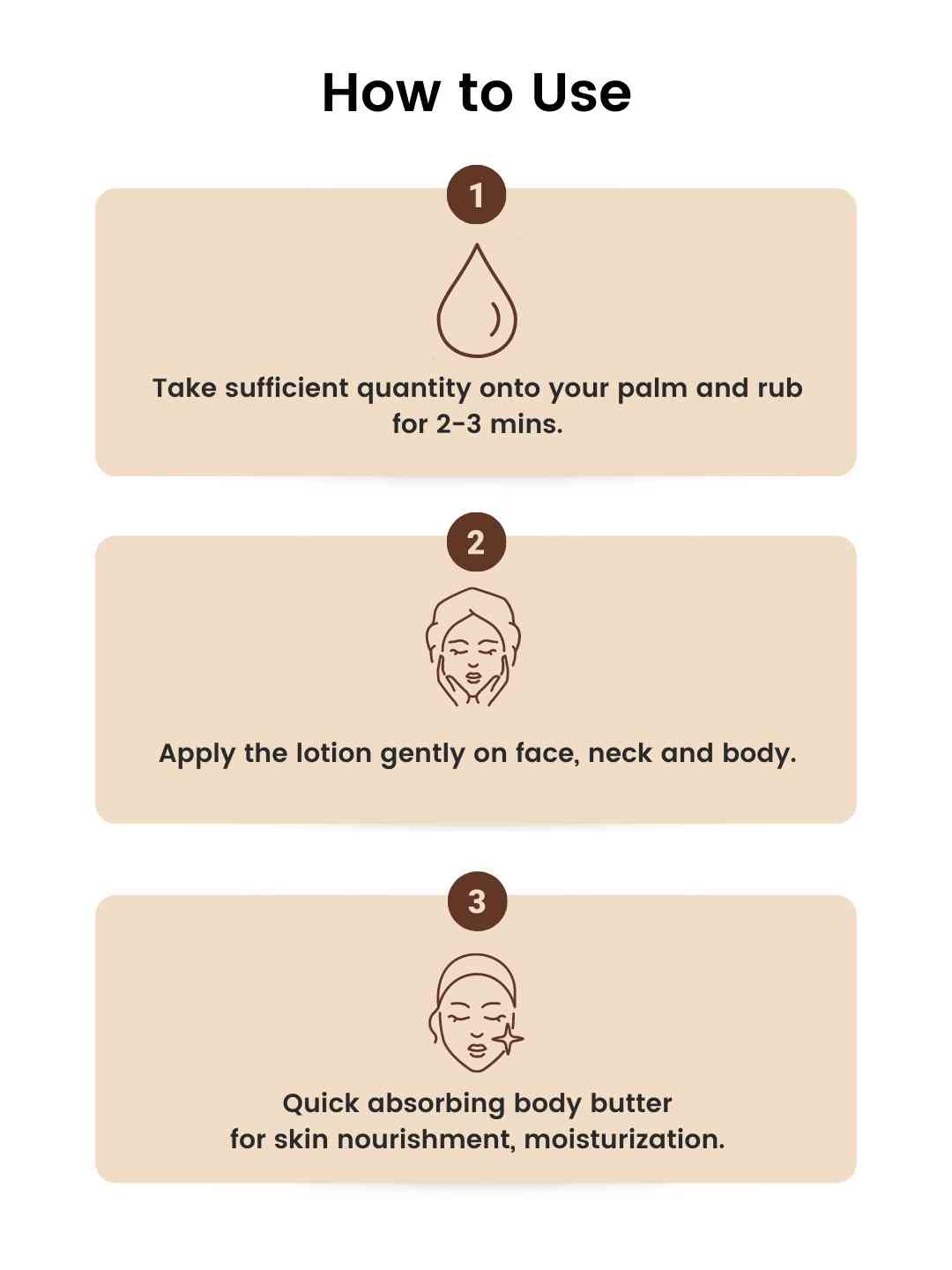 Depending on the dryness of the skin, the body butter can be applied whenever required. The Body Butter can be used twice/thrice a day to rejuvenate the skin.